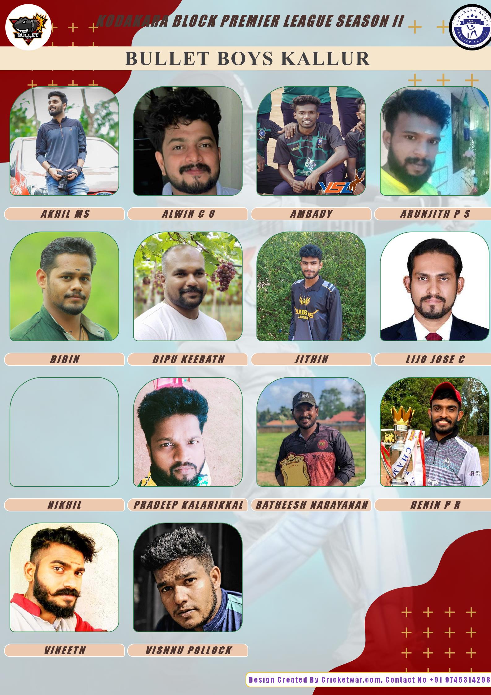 ALLROUNDER, AGE : 27 POUND Bid Amount : 1000 Team : BULLET BOYS KALLUR Download ID Card VIEW PROFILE |
