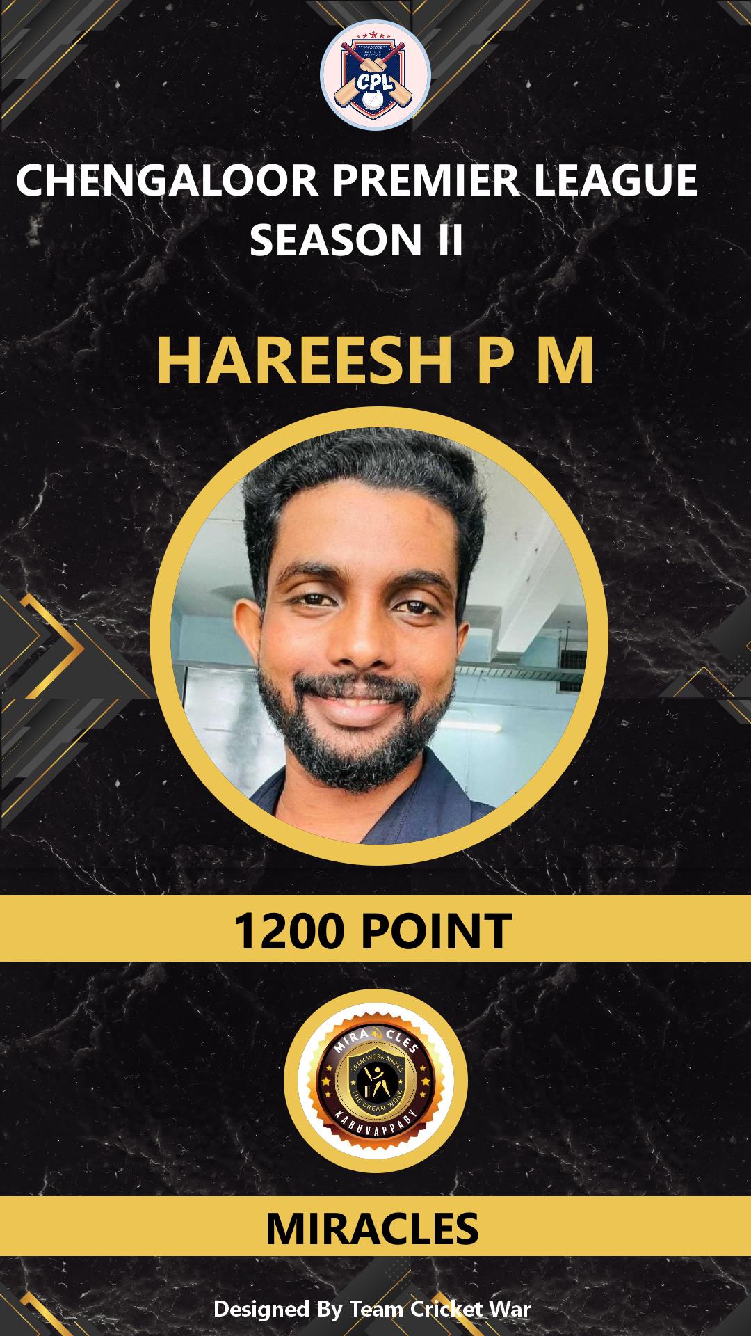 BOWLING ALLROUNDER, AGE : 48 MUPLIYAM Bid Amount : 1000 Team : MIRACLES Download ID Card |