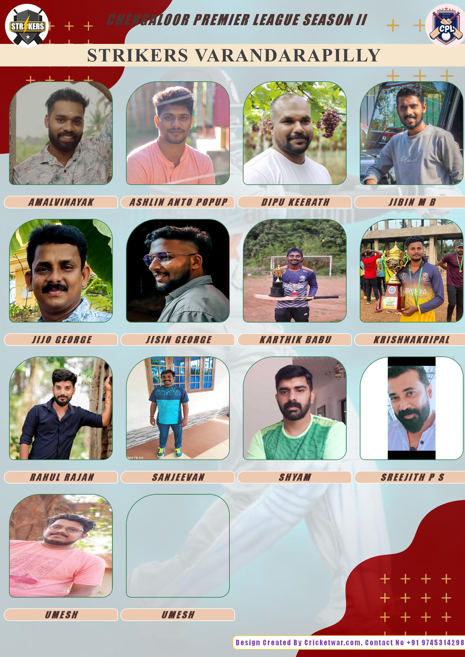 BATTING ALLROUNDER, AGE : 37 VARANDARAPILLY Bid Amount : 1000 Team : STRIKERS VARANDARAPILLY Download ID Card VIEW PROFILE |