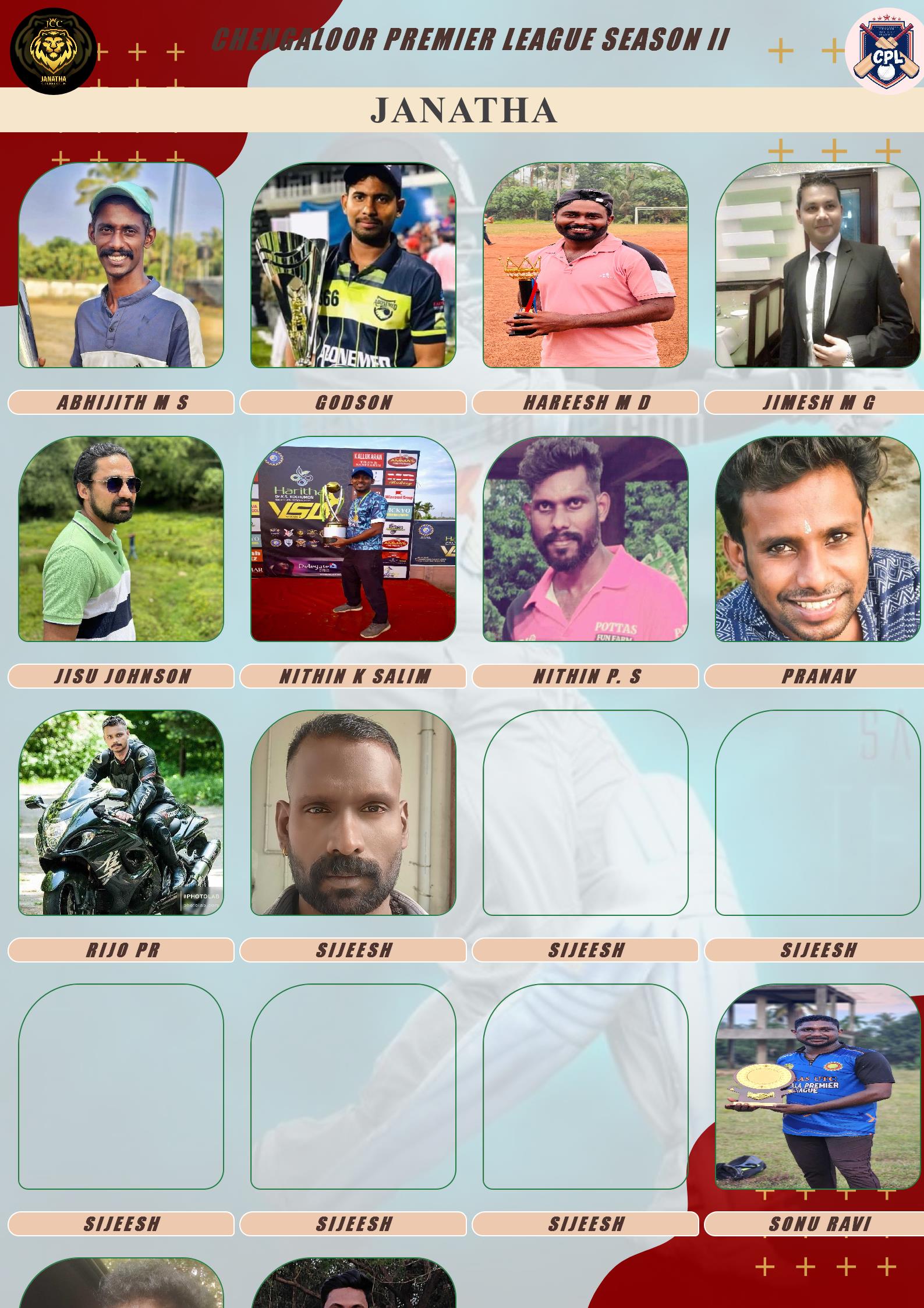 ALLROUNDER, AGE : 41 CHENGALOOR Bid Amount : 3000 Team : JANATHA Download ID Card VIEW PROFILE |
