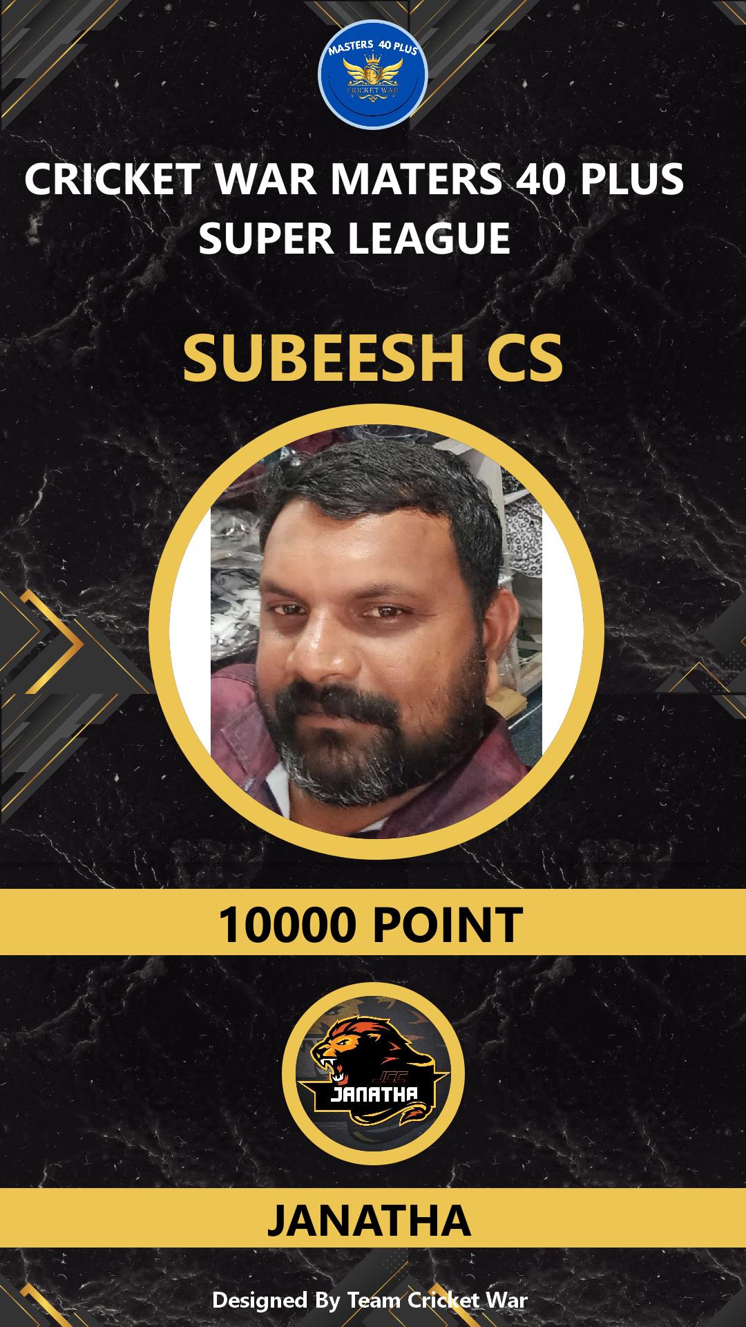 BATSMAN, AGE : 41 THRISSUR Bid Amount : 6500 Team : TEAM VIJAYADEEPAM Download ID Card VIEW PROFILE |