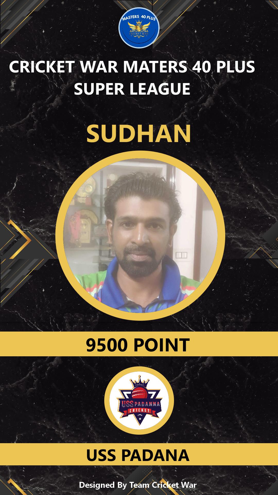 BOWLING ALLROUNDER, AGE : 46 PALAZHI Bid Amount : 1000 Team : USS PADANA Download ID Card VIEW PROFILE |