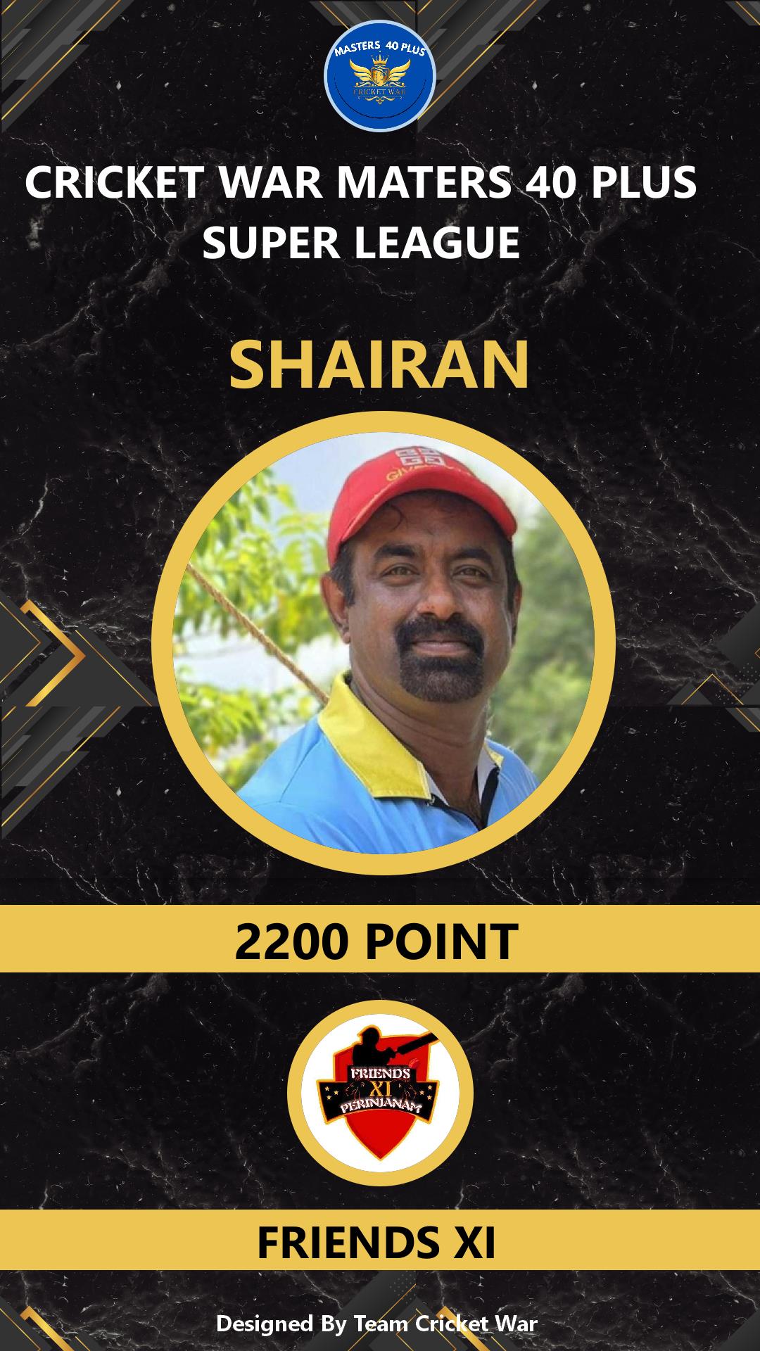 ALLROUNDER, AGE : 48 CHAZHUR Bid Amount : 2200 Team : FRIENDS XI Download ID Card VIEW PROFILE |