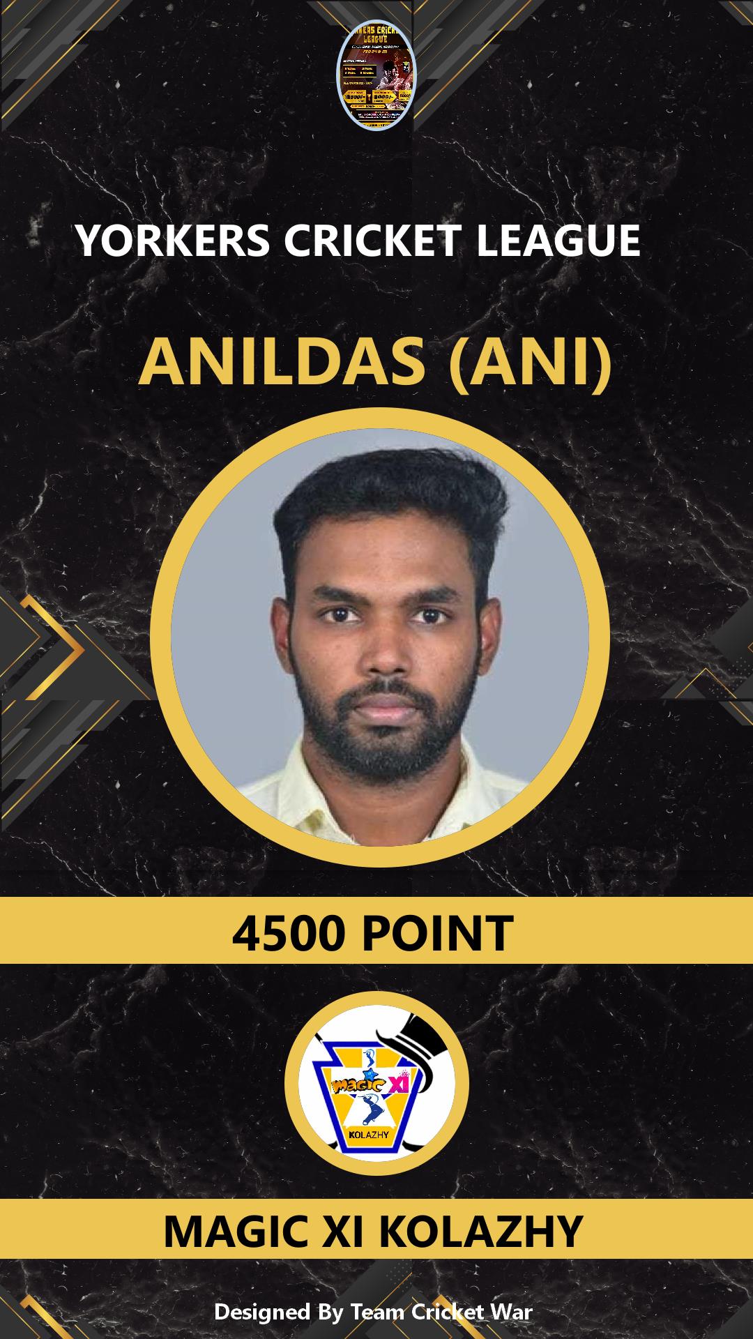 ALLROUNDER, AGE : 32 MG KAVU Bid Amount : 1000 Team : MAGIC XI KOLAZHY Download ID Card VIEW PROFILE |