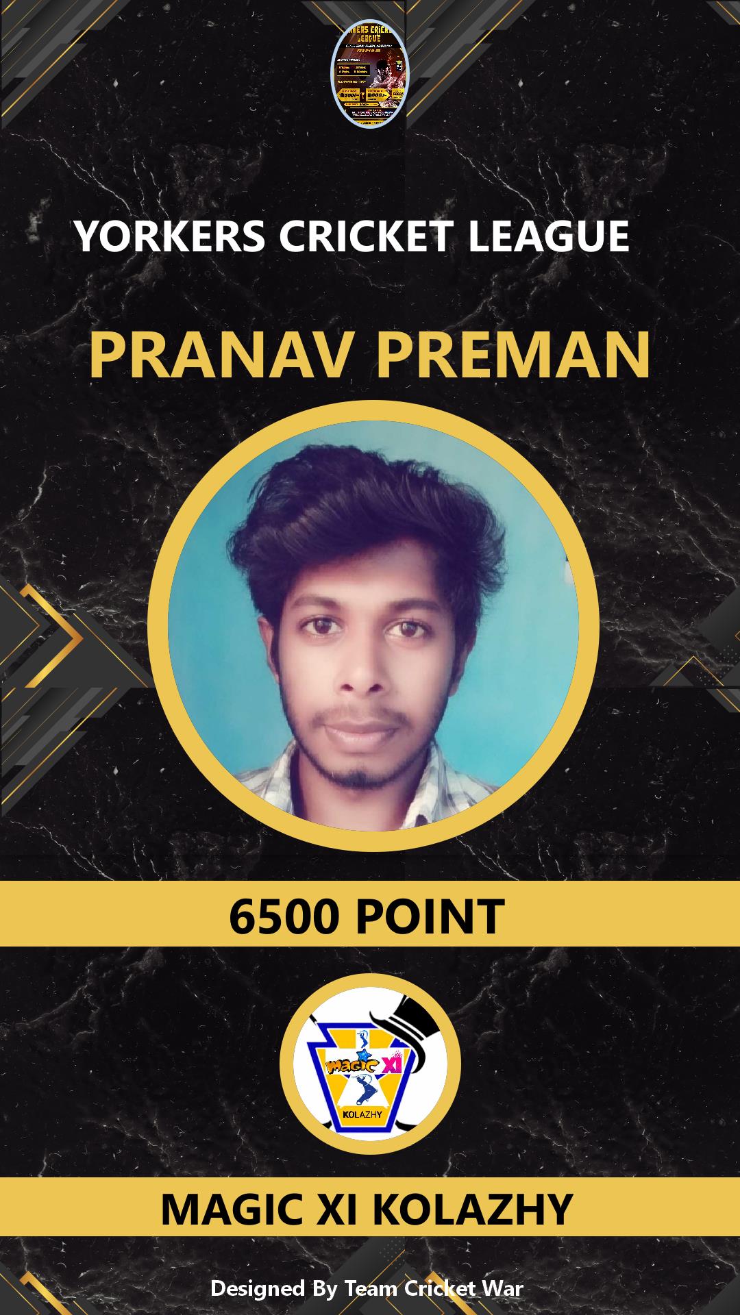 BOWLING ALLROUNDER, AGE : 22 PONGANAMKAAD Bid Amount : 2200 Team : 4 THE PEOPLE Download ID Card VIEW PROFILE |