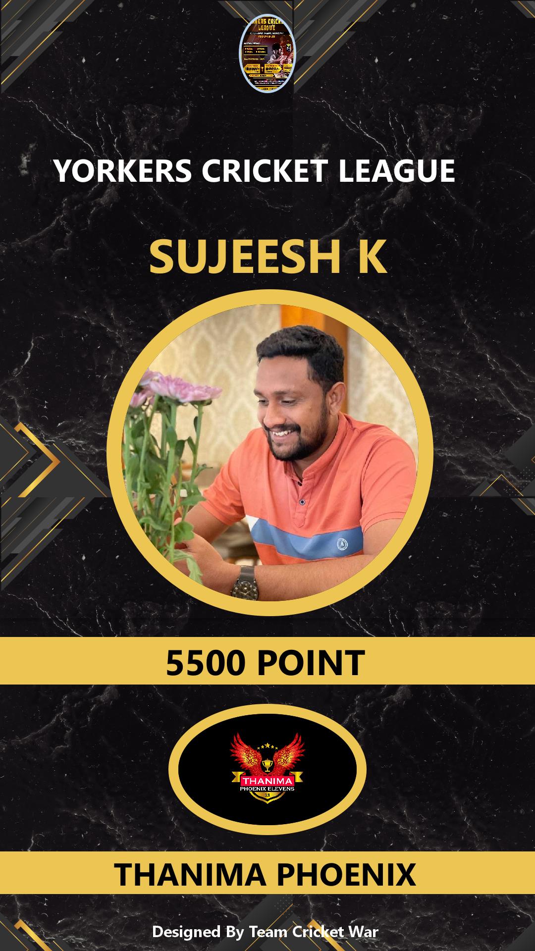 BOWLING ALLROUNDER, AGE : 31 KUNJANAMPARA Bid Amount : 1600 Team : ACTIVE BOYS Download ID Card VIEW PROFILE |