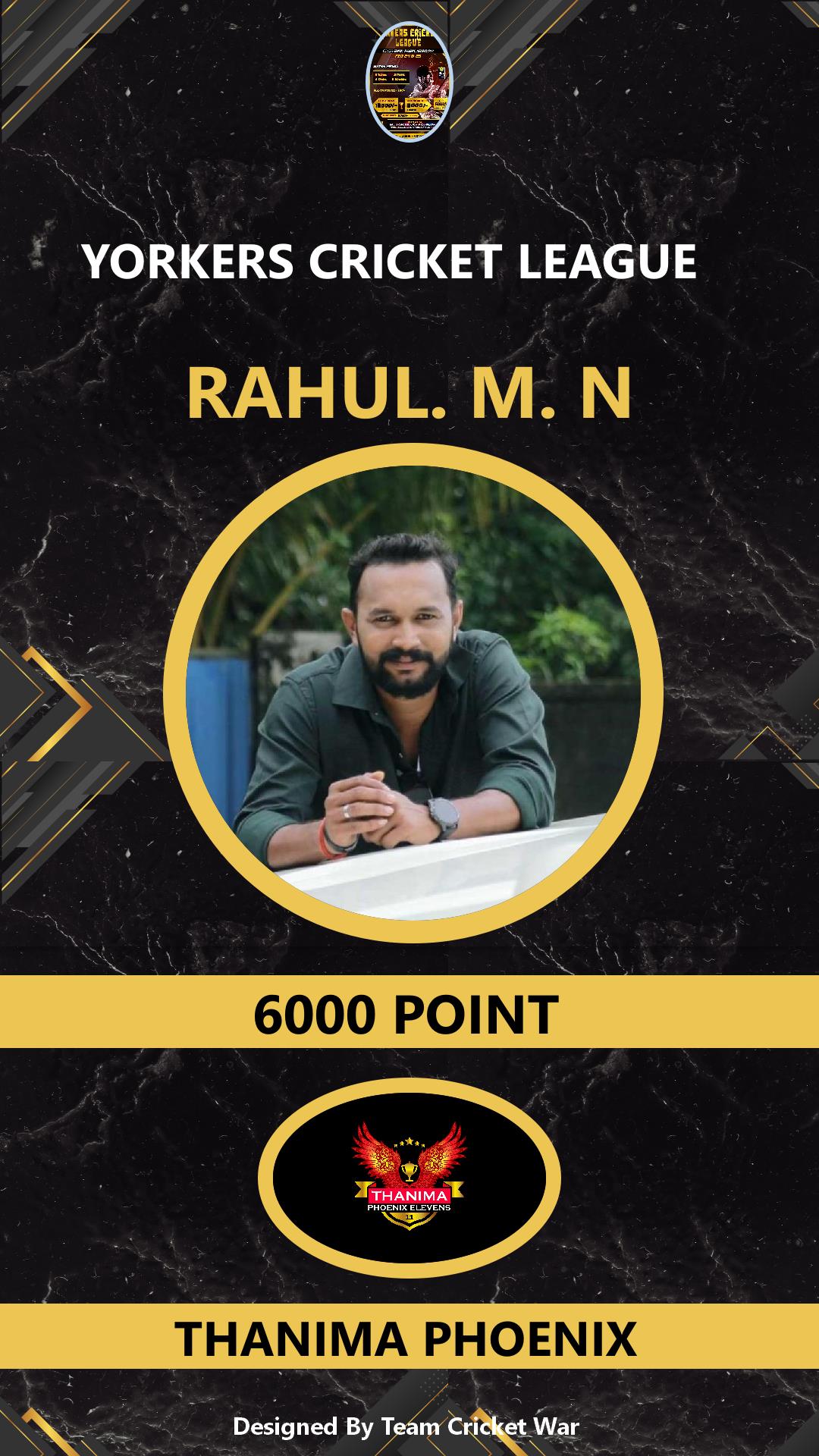BOWLING ALLROUNDER, AGE : 34 AYYANTHIOLE Bid Amount : 6000 Team : THANIMA PHOENIX Download ID Card VIEW PROFILE |