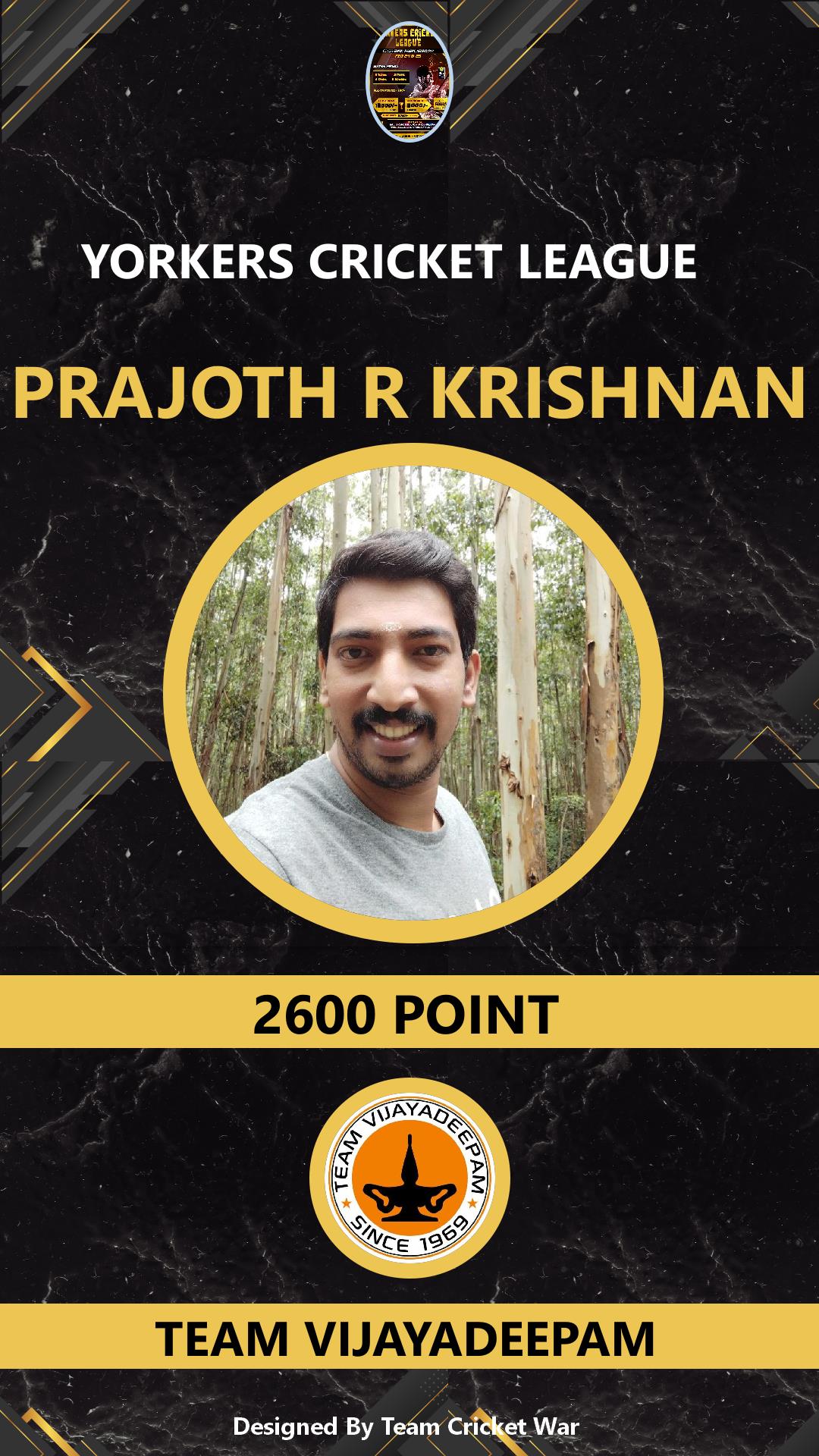 ALLROUNDER, AGE : 37 VIYYUR Bid Amount : 3500 Team : TEAM VIJAYADEEPAM Download ID Card VIEW PROFILE |