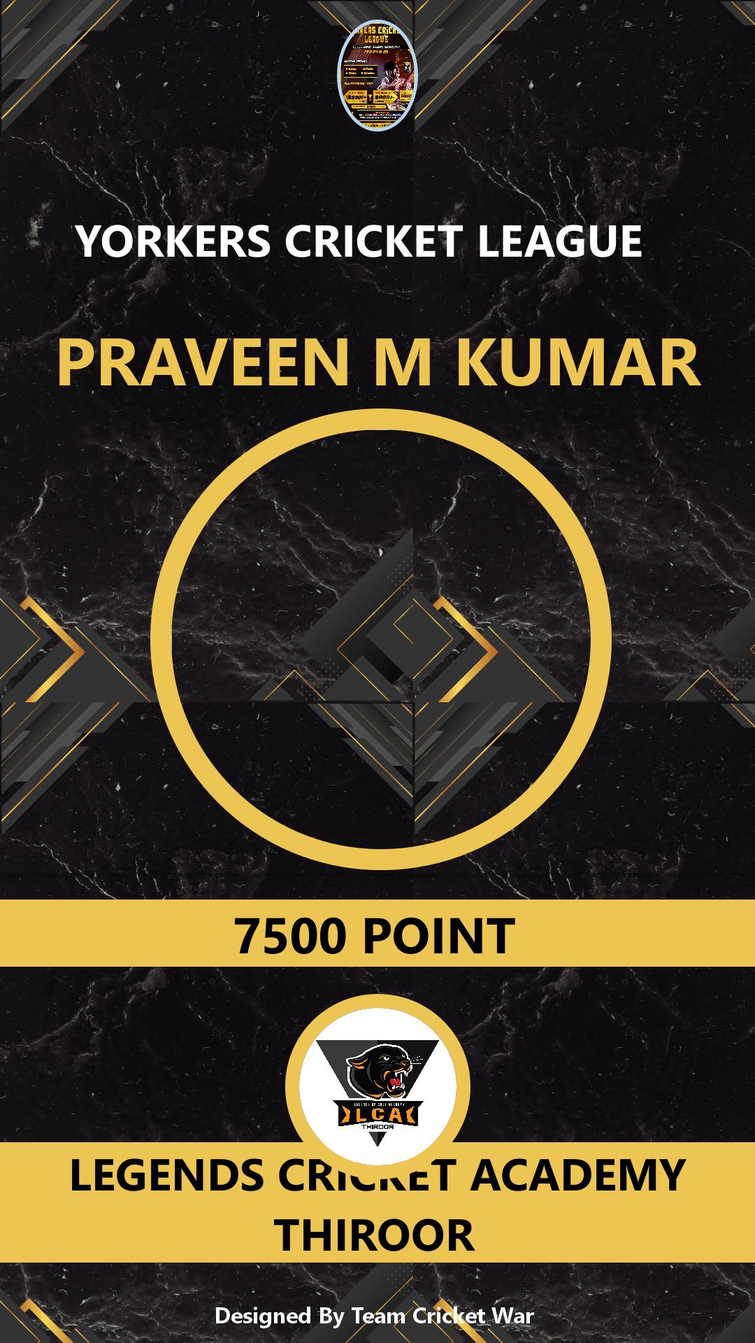 ALLROUNDER, AGE : 27 THIROOR Bid Amount : 1400 Team : LEGENDS CRICKET ACADEMY THIROOR Download ID Card VIEW PROFILE |