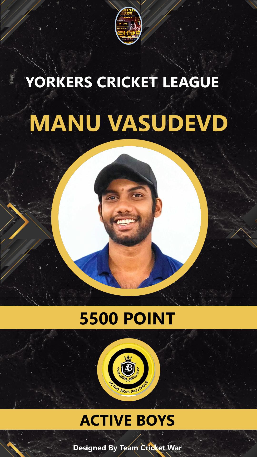BATTING ALLROUNDER, AGE : 30 VATTAKKALLU Bid Amount : 3500 Team : ACTIVE BOYS Download ID Card VIEW PROFILE |