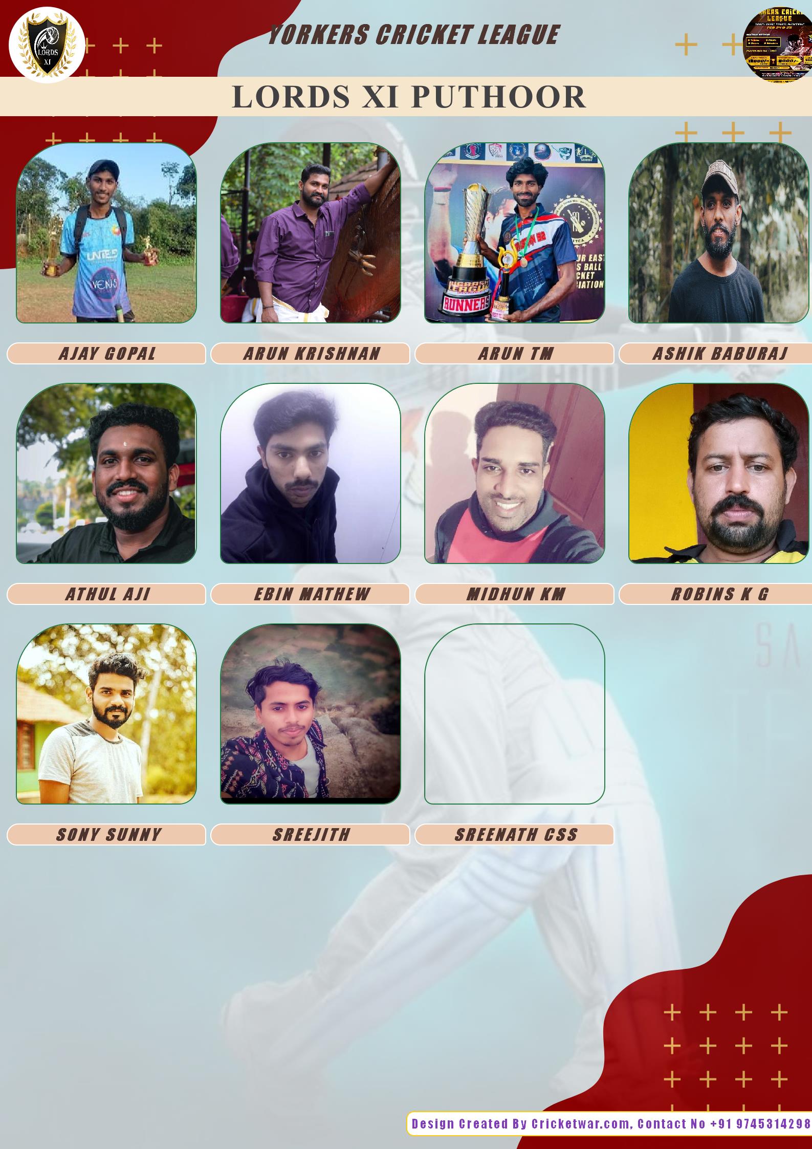 ALLROUNDER, AGE : 33 Bid Amount : 1000 Team : LORDS XI PUTHOOR Download ID Card VIEW PROFILE |