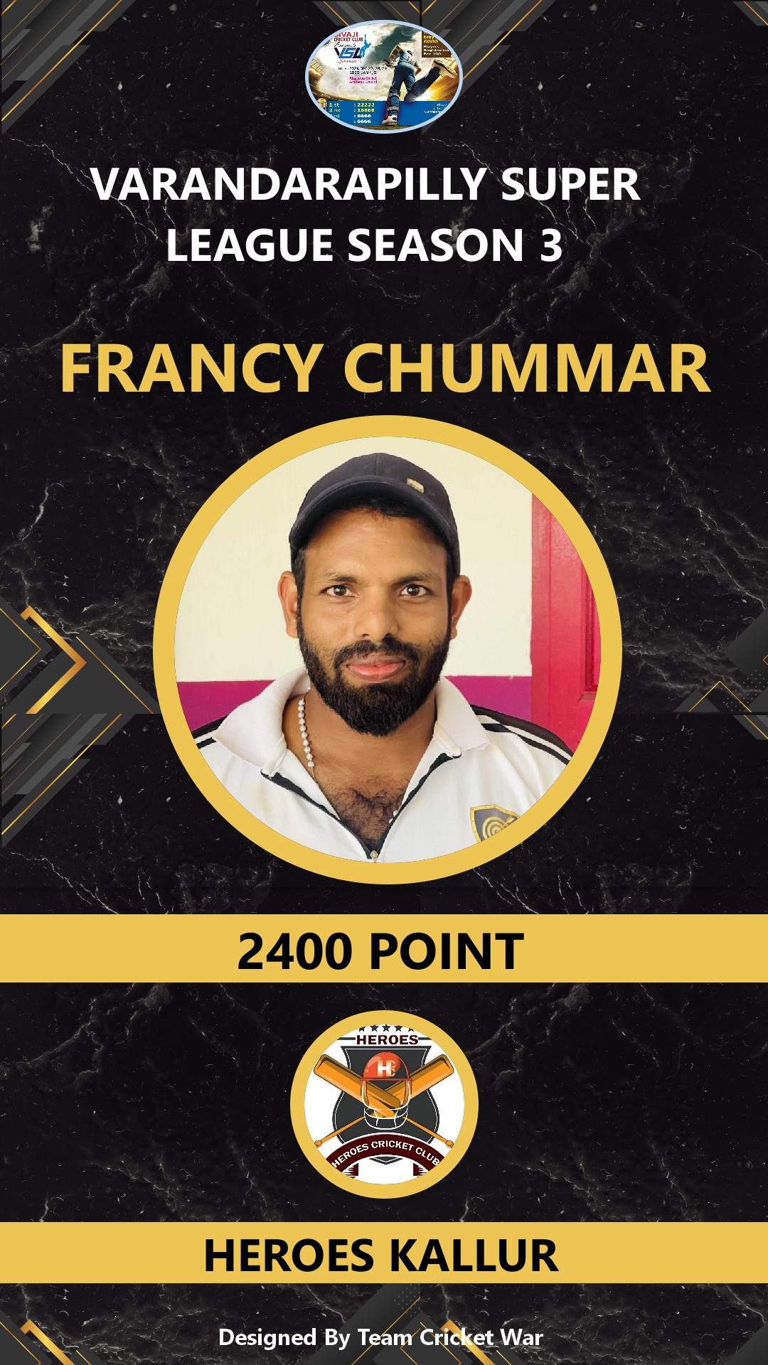 BATSMAN, AGE : 34 KALAVARAKKUNNU Bid Amount : 1000 Team : EQUALS VARANDARAPILLY Download ID Card VIEW PROFILE |