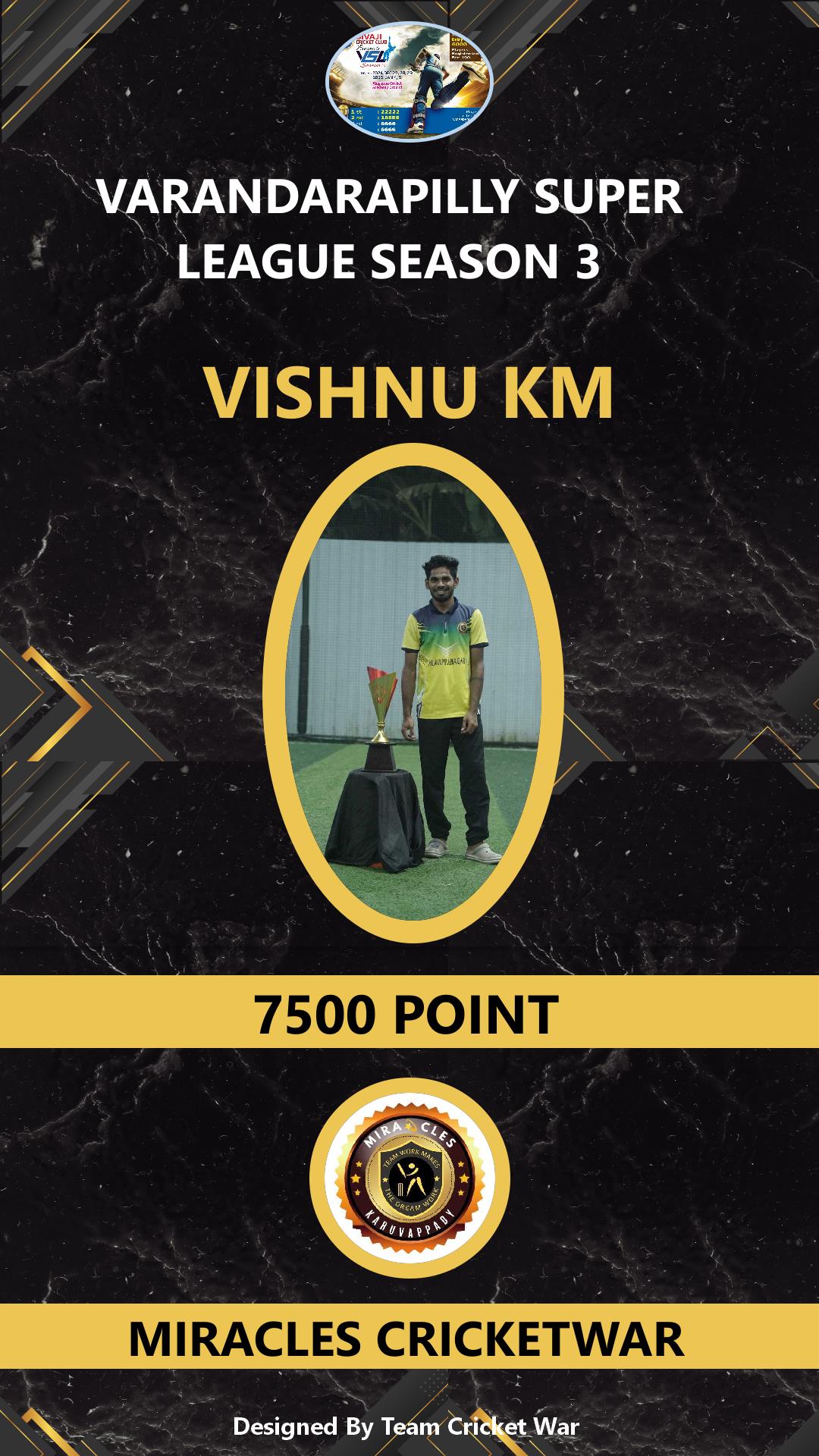 BATSMAN, AGE : 26 MANNAMPETTA Bid Amount : 7500 Team : MIRACLES CRICKETWAR Download ID Card VIEW PROFILE |