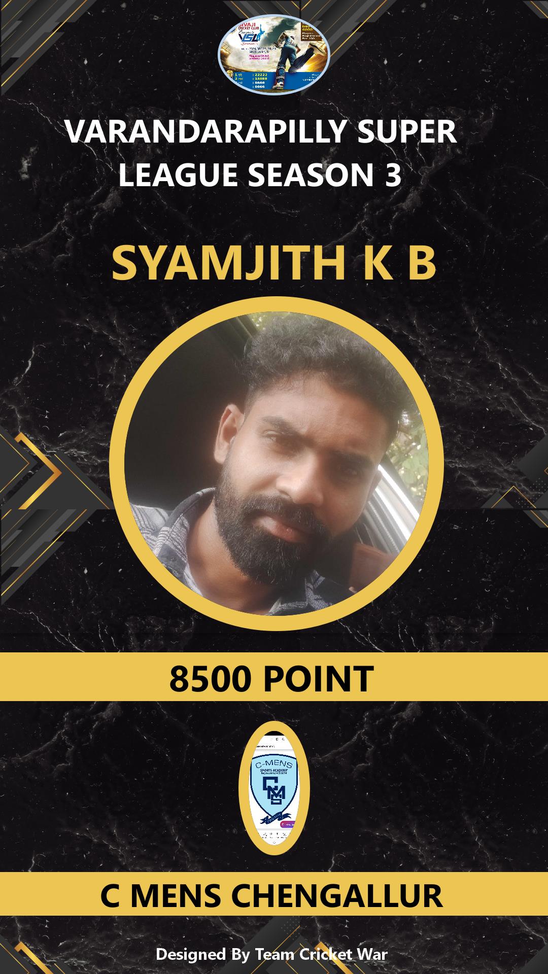 ALLROUNDER, AGE : 26 VARANDHARAPPILLY Bid Amount : 1800 Team : C MENS CHENGALLUR Download ID Card VIEW PROFILE |