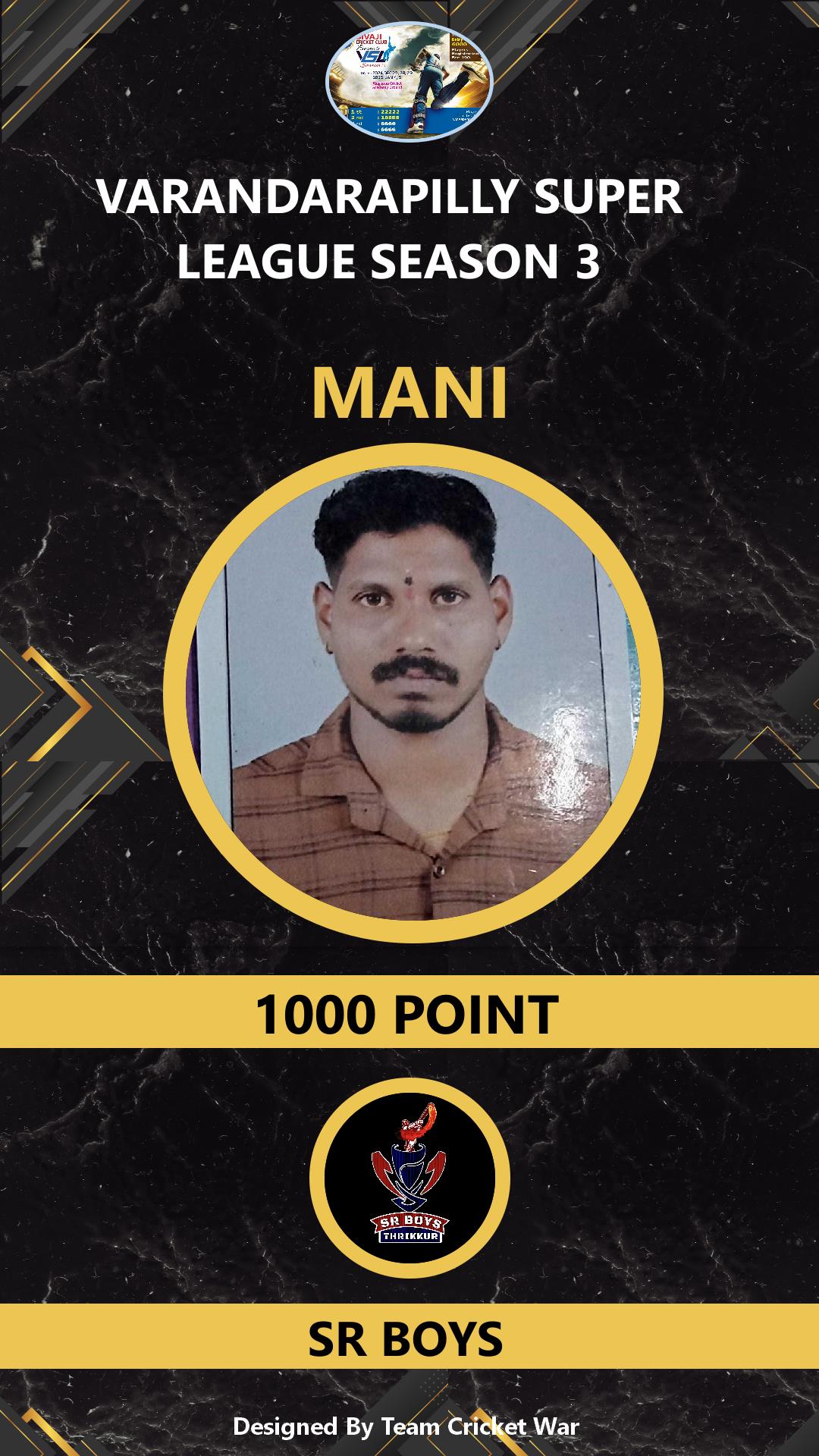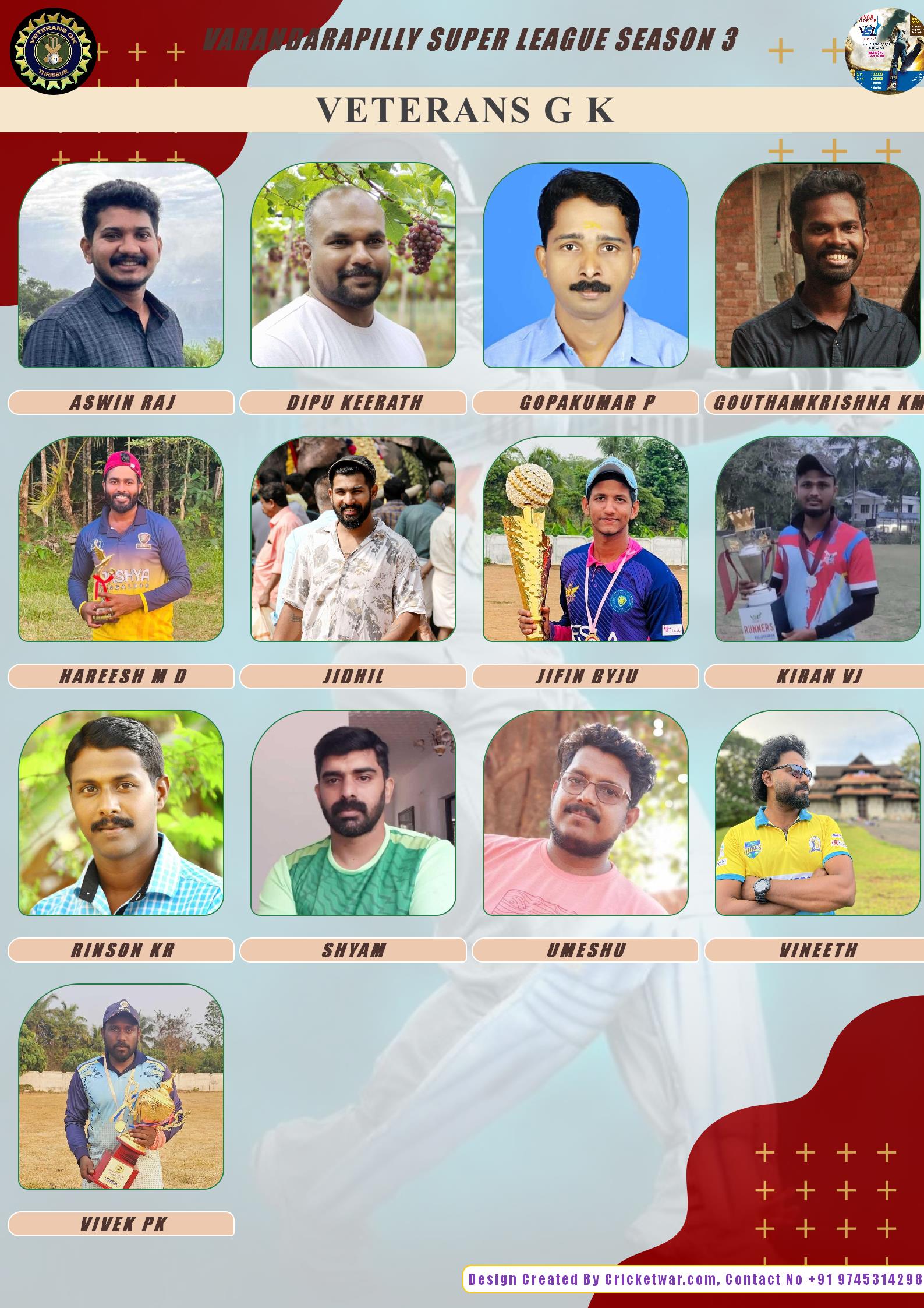 ALLROUNDER, AGE : 48 MUPLIYAM Bid Amount : 1000 Team : VETERANS G K Download ID Card VIEW PROFILE |