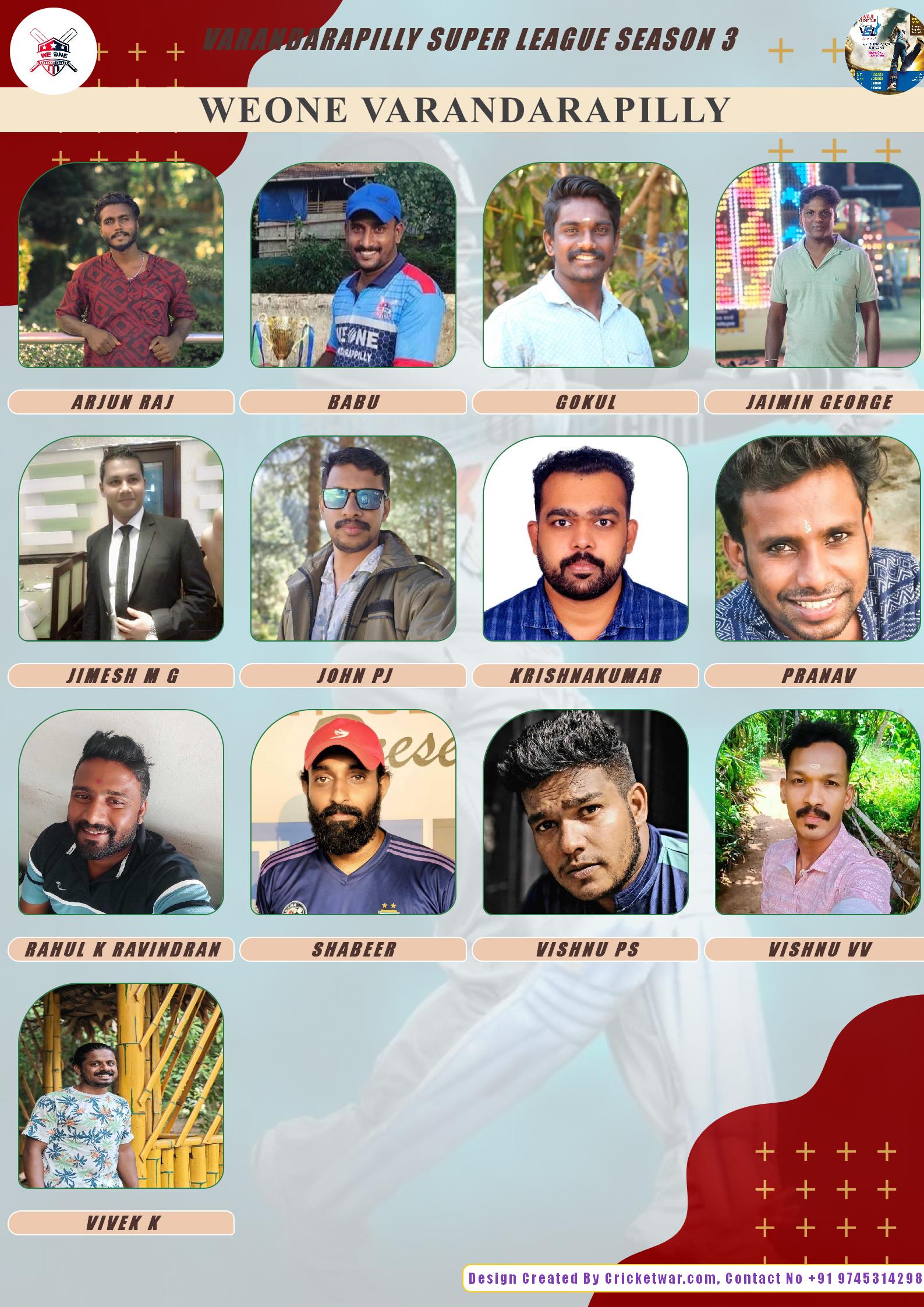 ALLROUNDER, AGE : 36 VARANDARAPPILLY Bid Amount : 3600 Team : WEONE VARANDARAPILLY Download ID Card VIEW PROFILE |