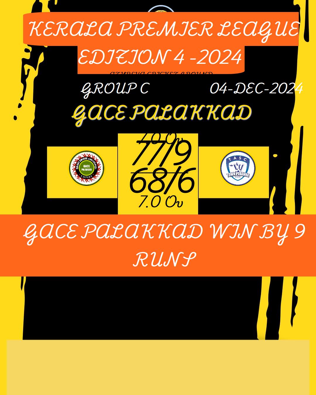 GACE PALAKKAD WIN BY 9 RUNS