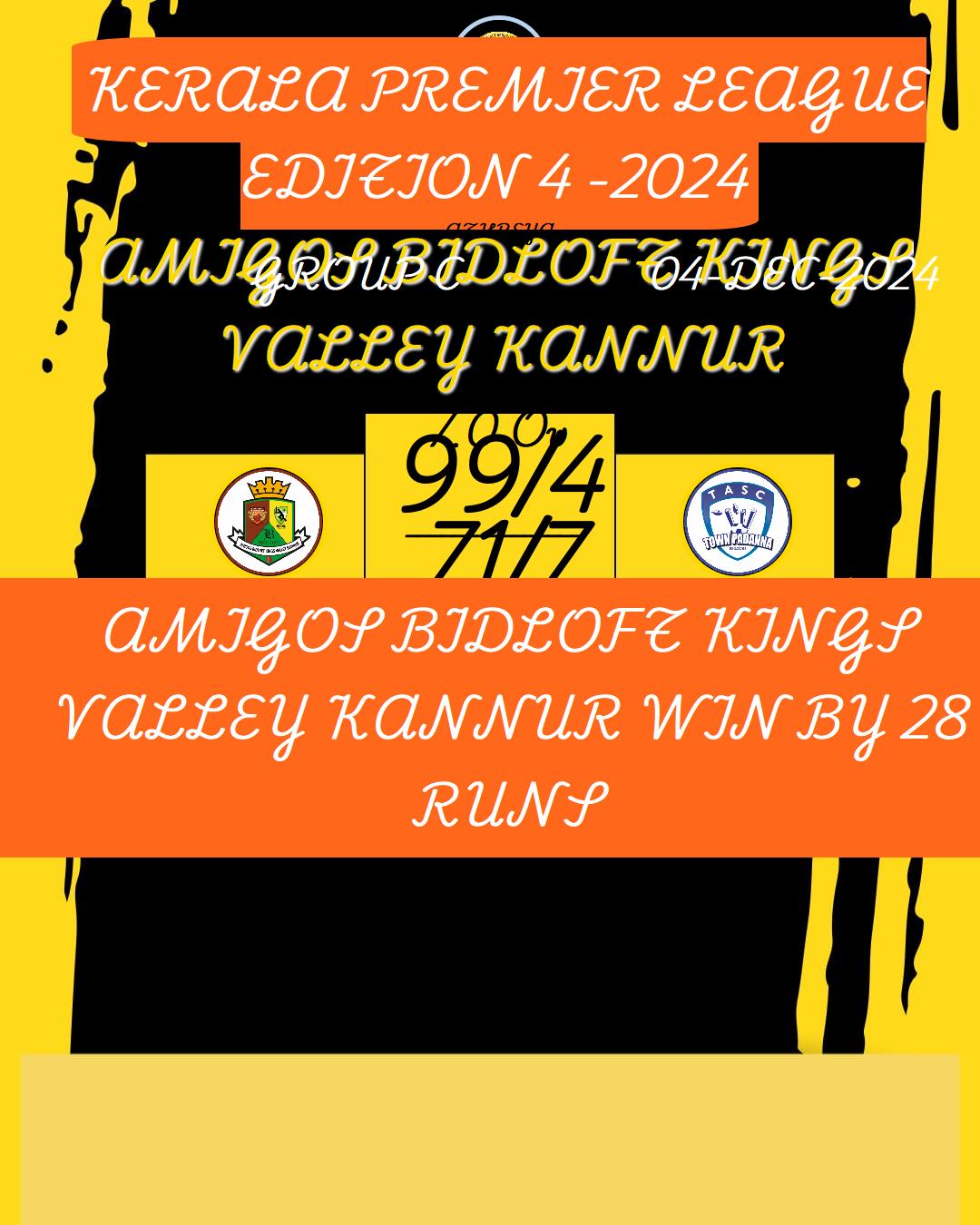 AMIGOS BIDLOFT KINGS VALLEY KANNUR WIN BY 57 RUNS