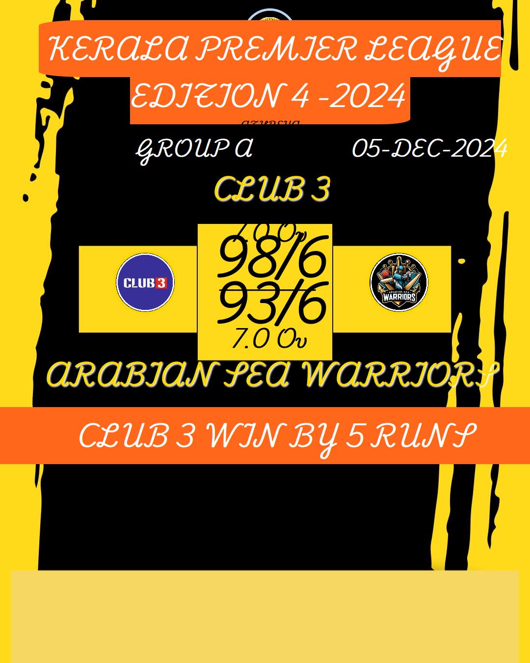 ARABIAN SEA WARRIORS WIN BY 6 RUNS