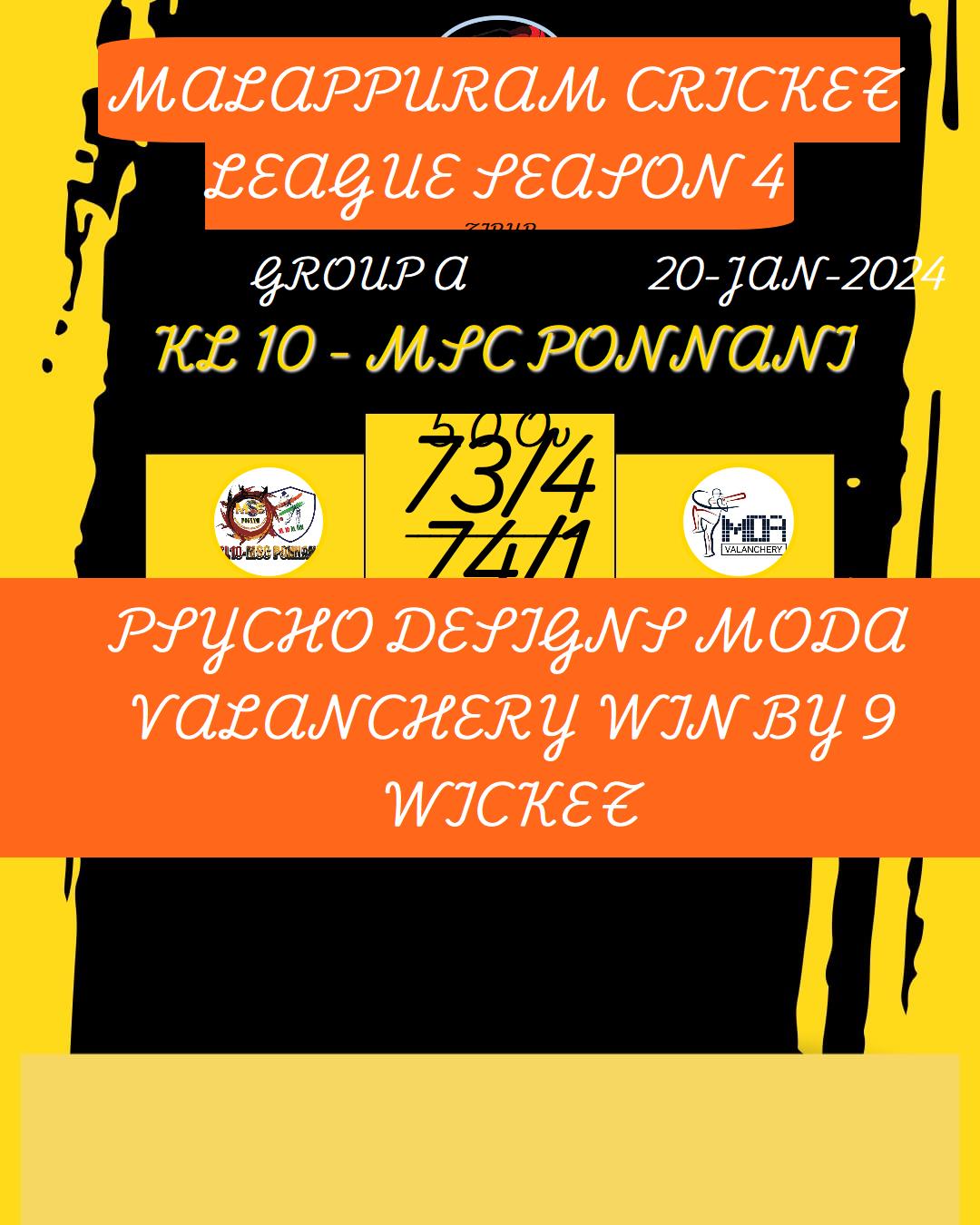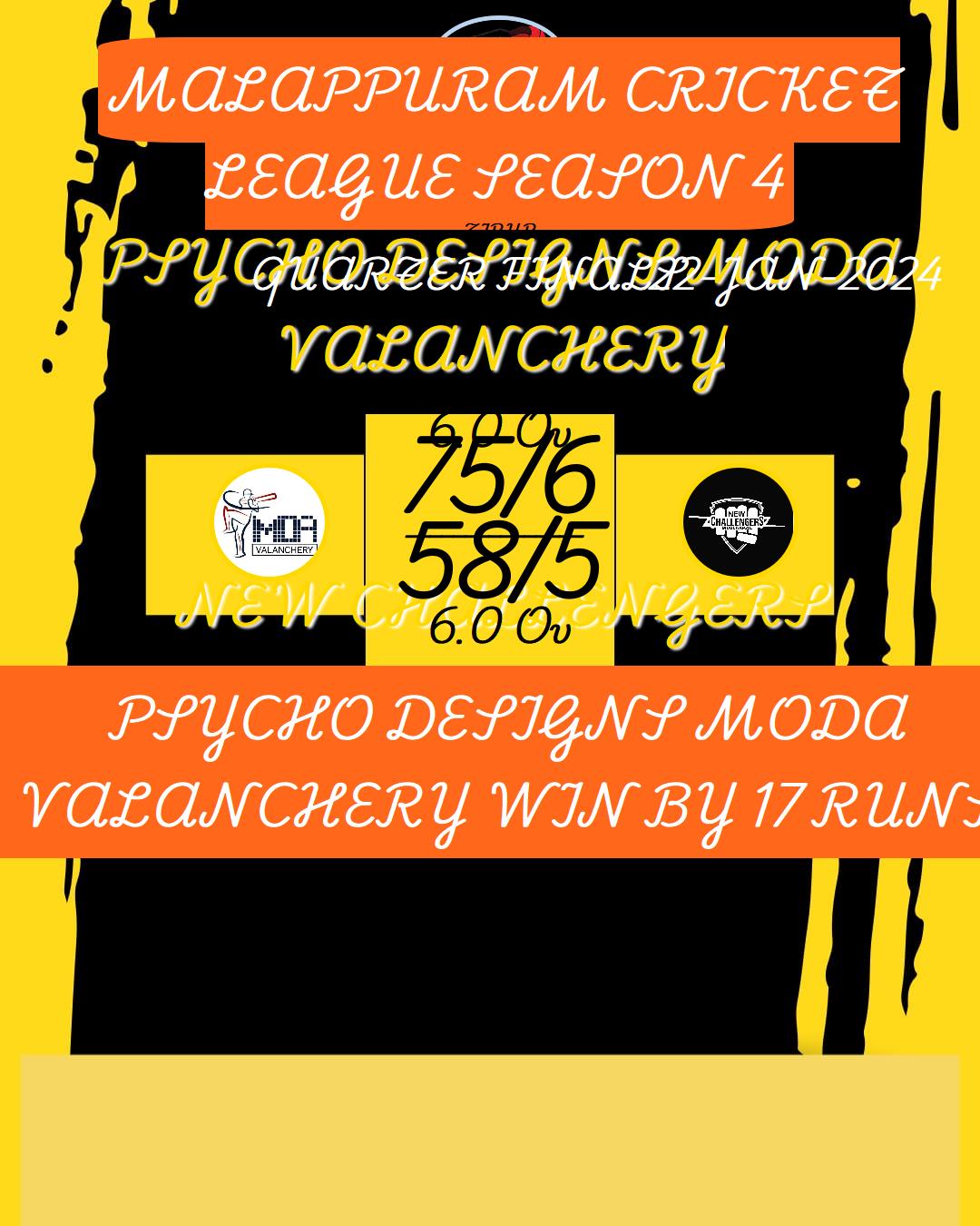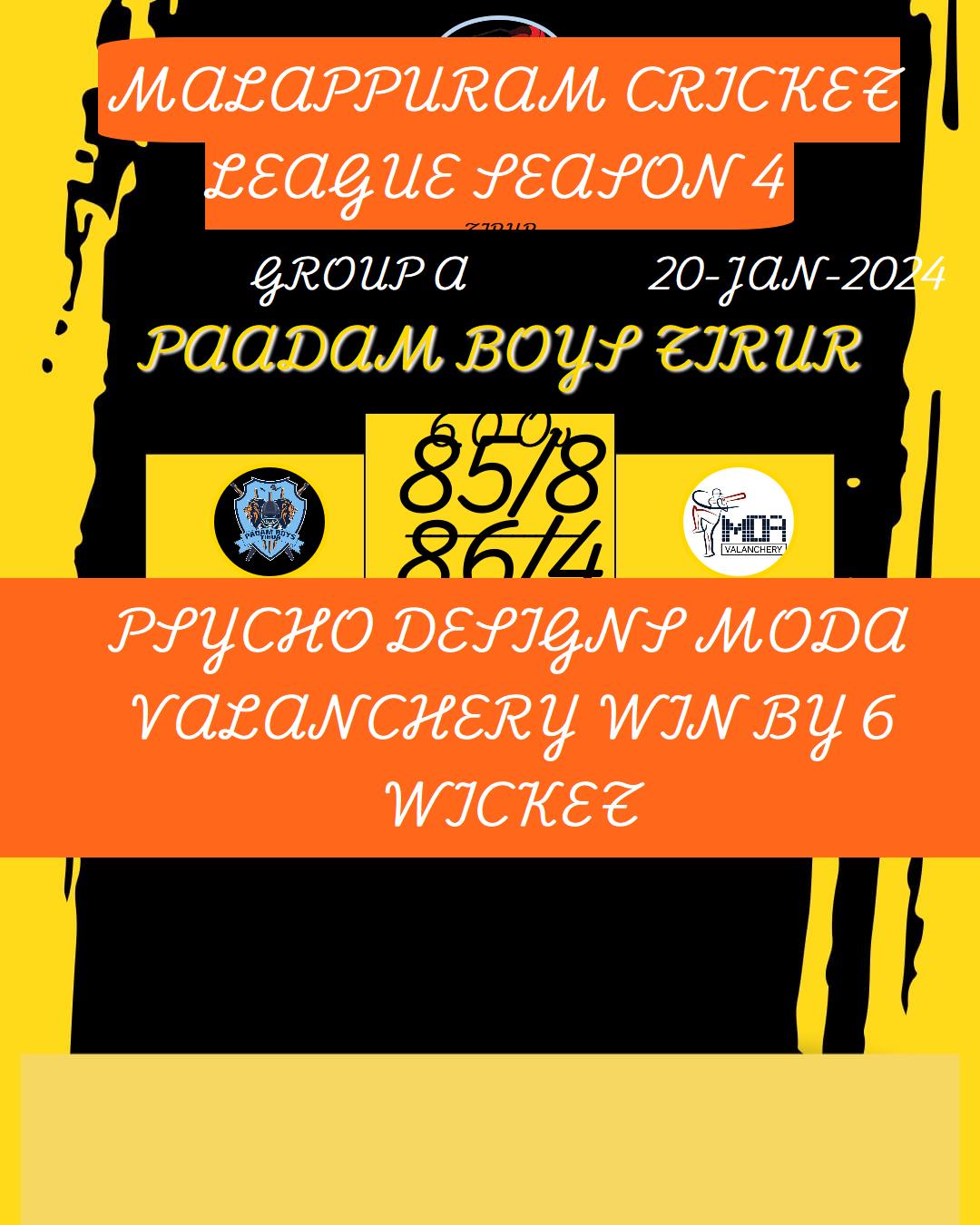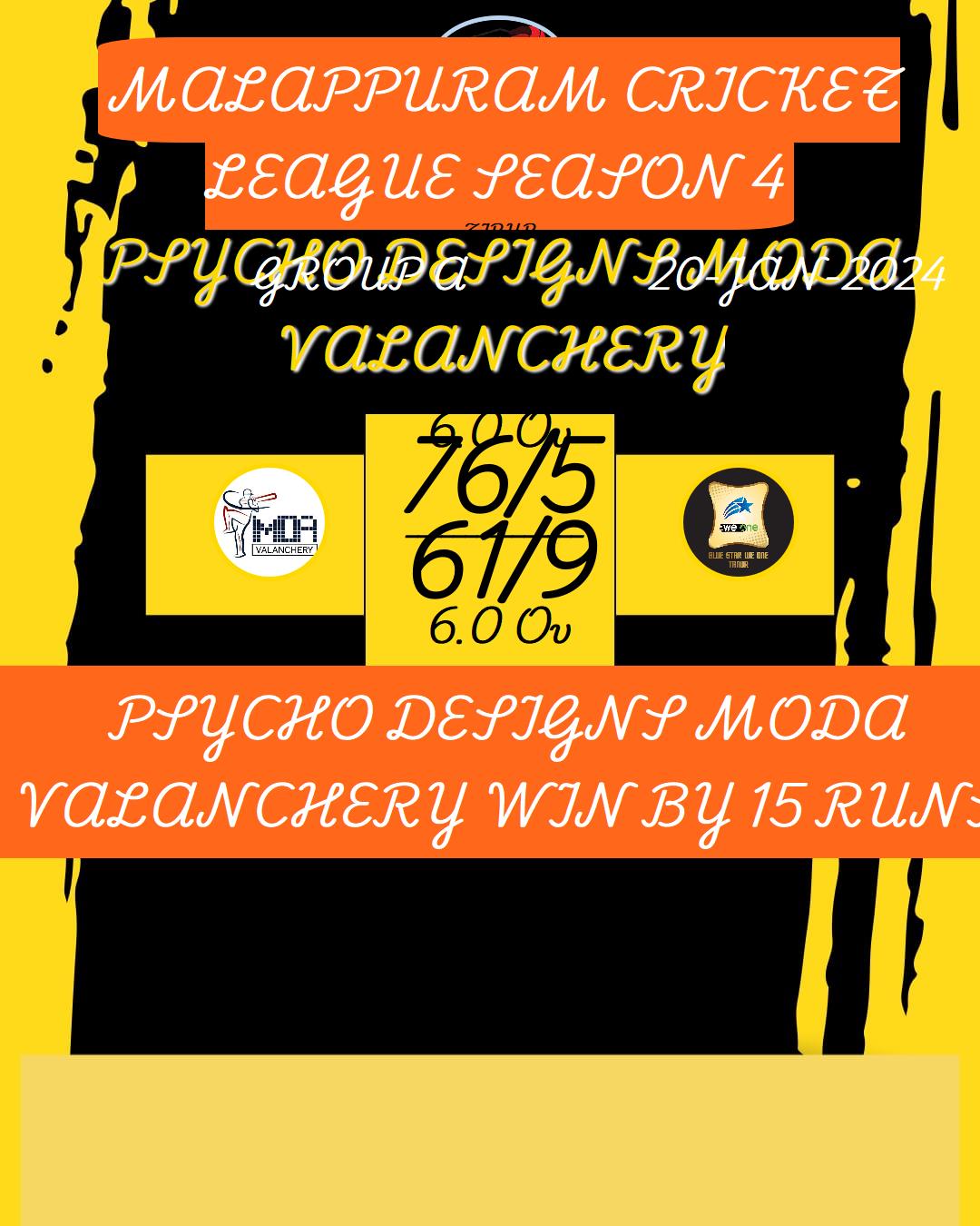 PSYCHO DESIGNS MODA VALANCHERY WIN BY 6 WICKET