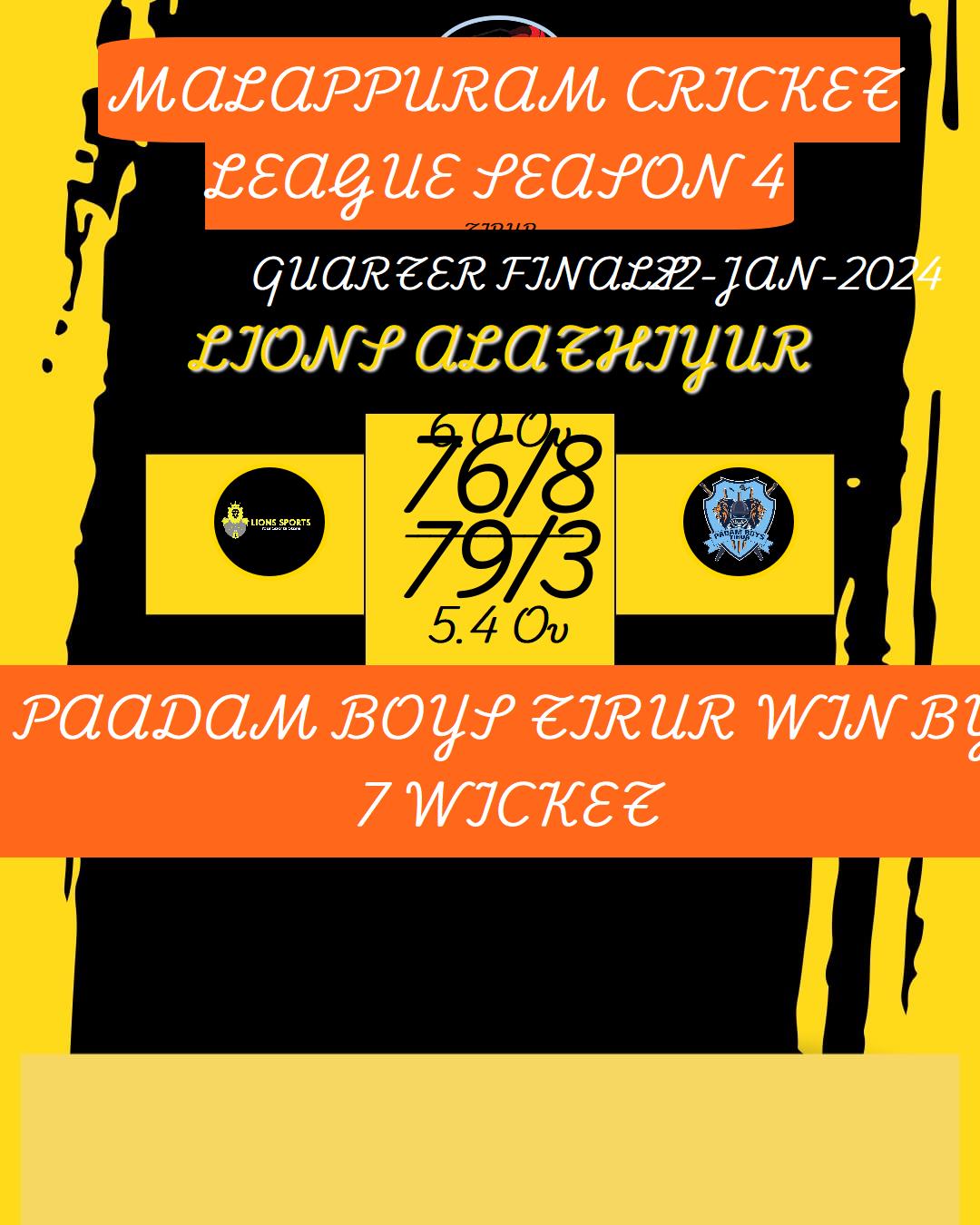 MALAPPURAM CRICKET LEAGUE SEASON 4 MATCHES