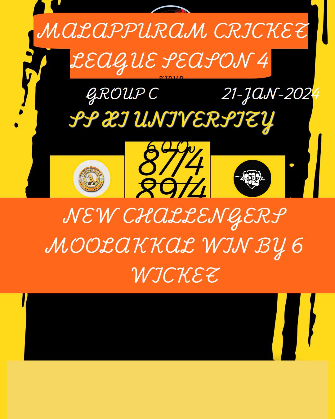 NEW CHALLENGERS MOOLAKKAL WIN BY 6 WICKET