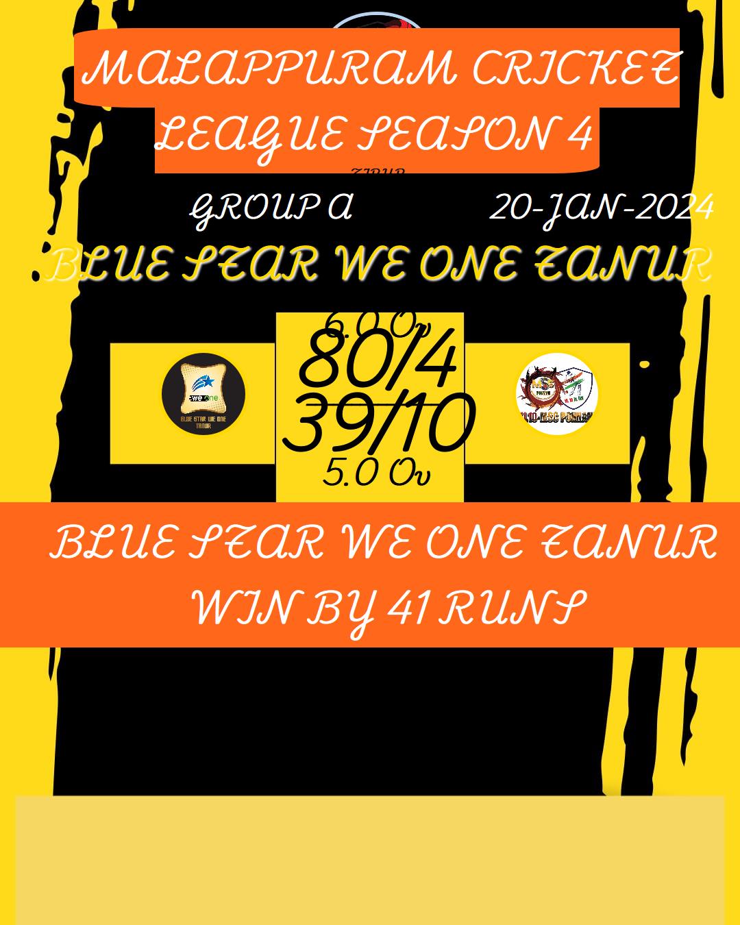 BLUE STAR WE ONE TANUR WIN BY 41 RUNS
