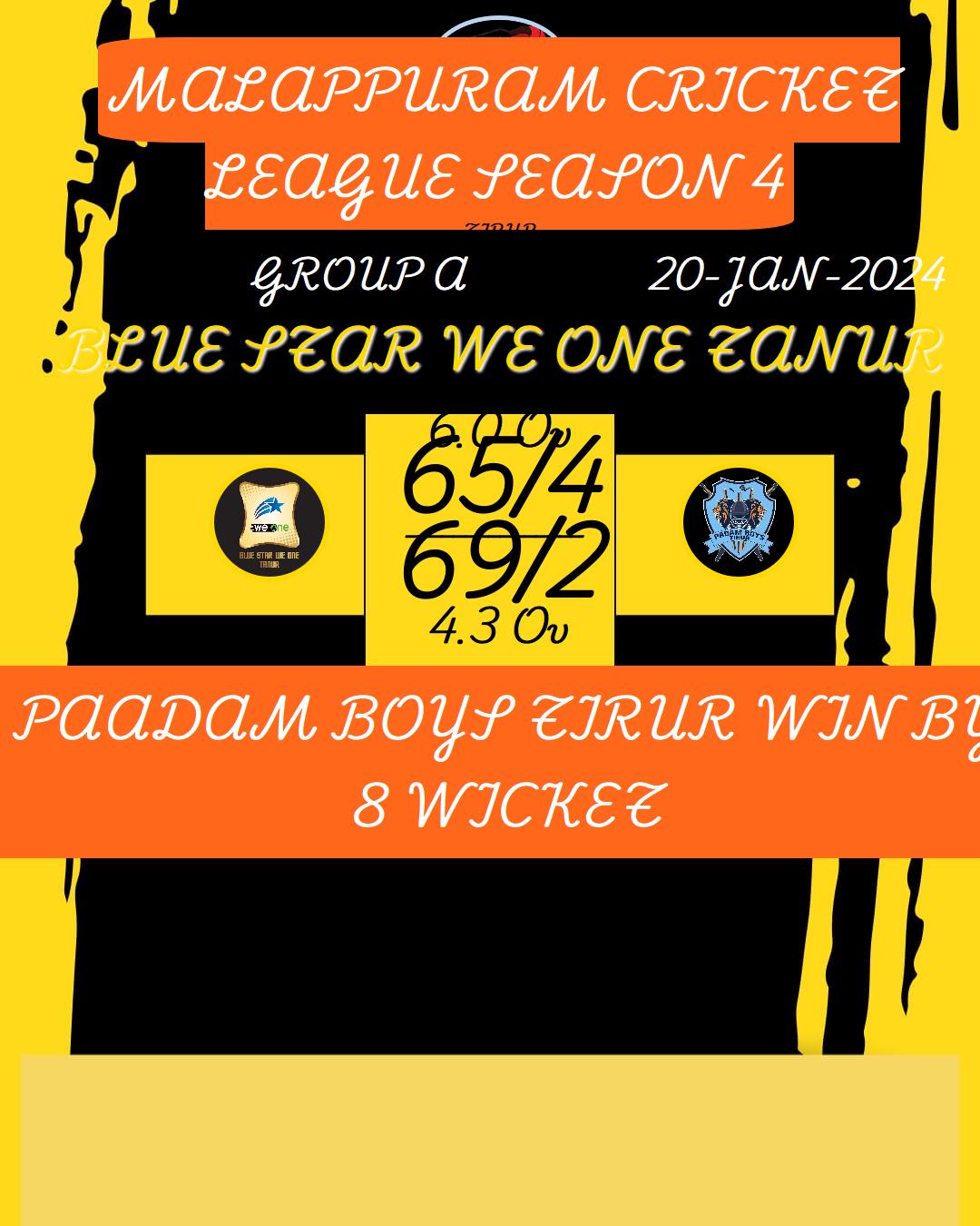 PAADAM BOYS TIRUR WIN BY 8 WICKET
