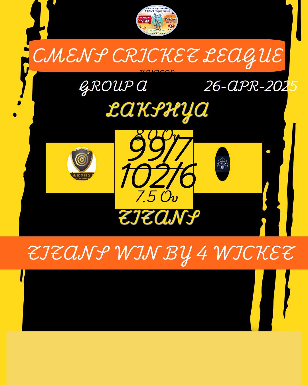 LAKSHYA WIN BY 7 WICKET
