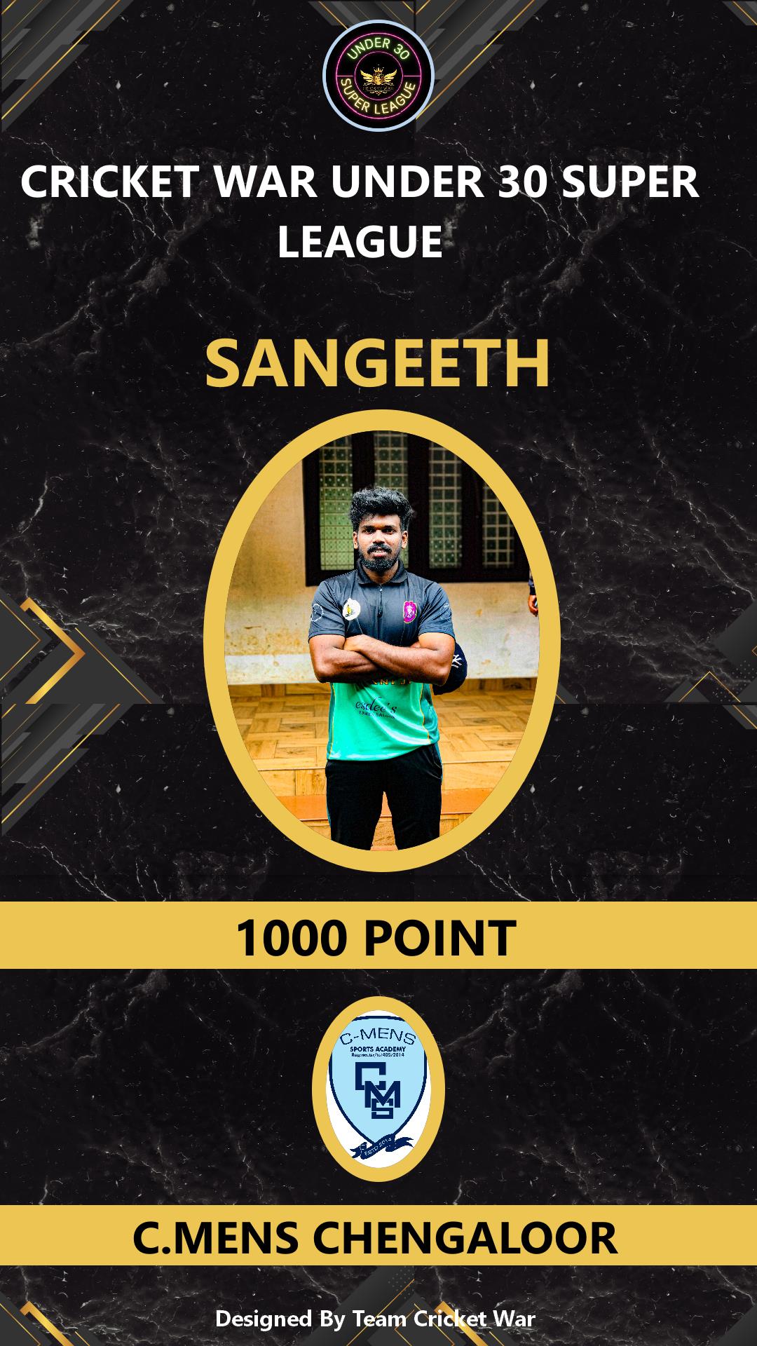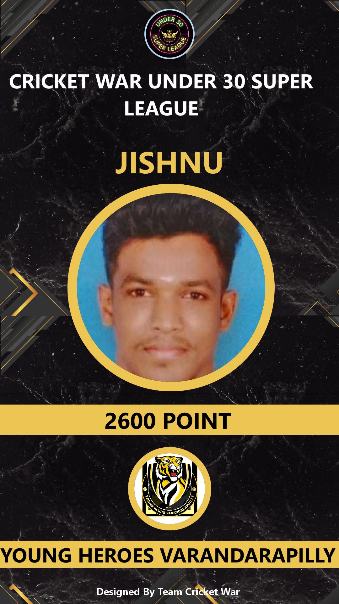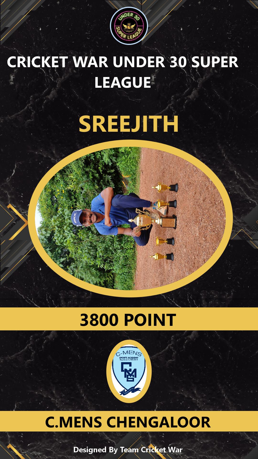 | Tournament Name | : | CRICKET WAR UNDER 30 SUPER LEAGUE |