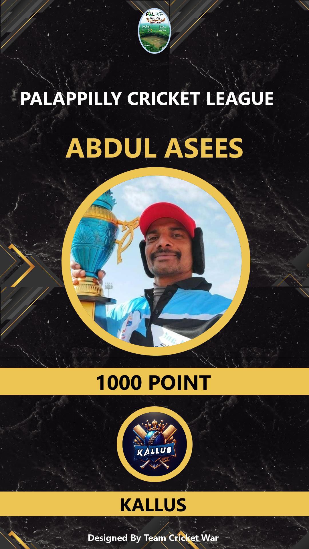 | Tournament Name | : | PALAPPILLY CRICKET LEAGUE |