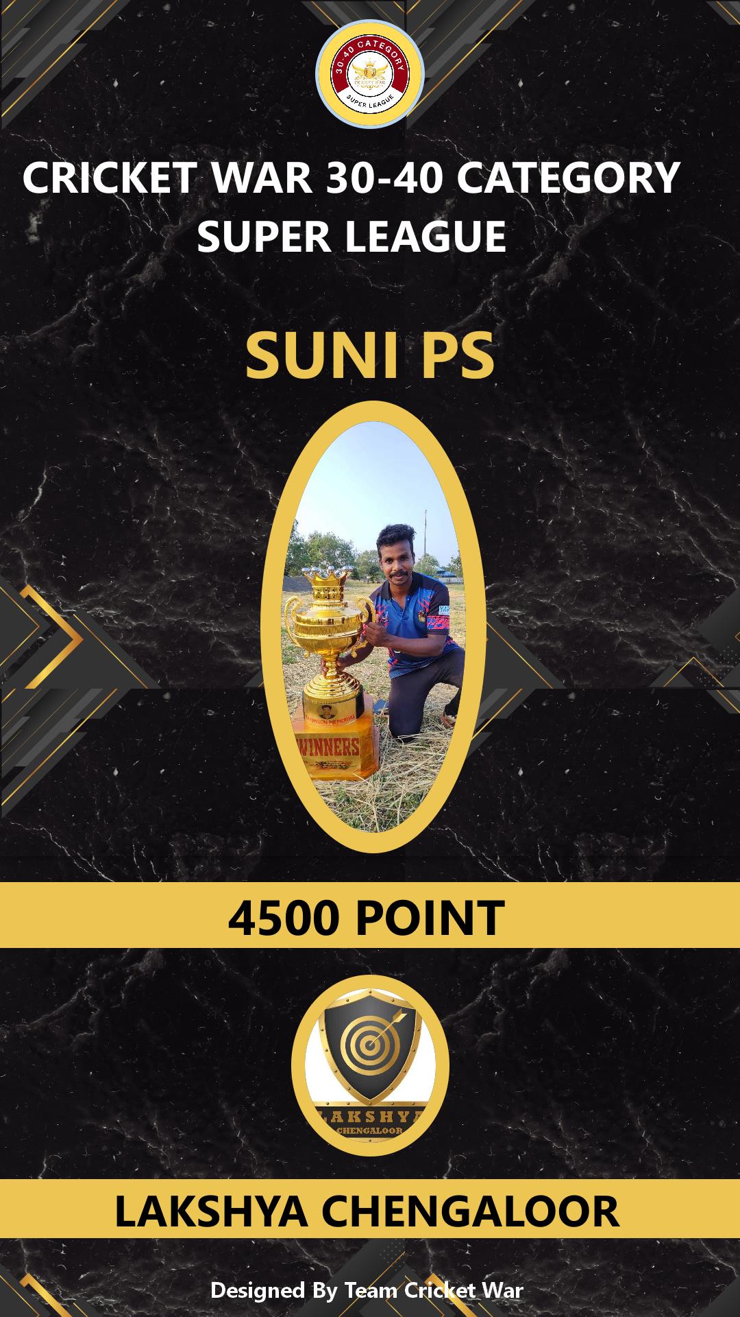 | Tournament Name | : | CRICKET WAR 30-40 CATEGORY SUPER LEAGUE |