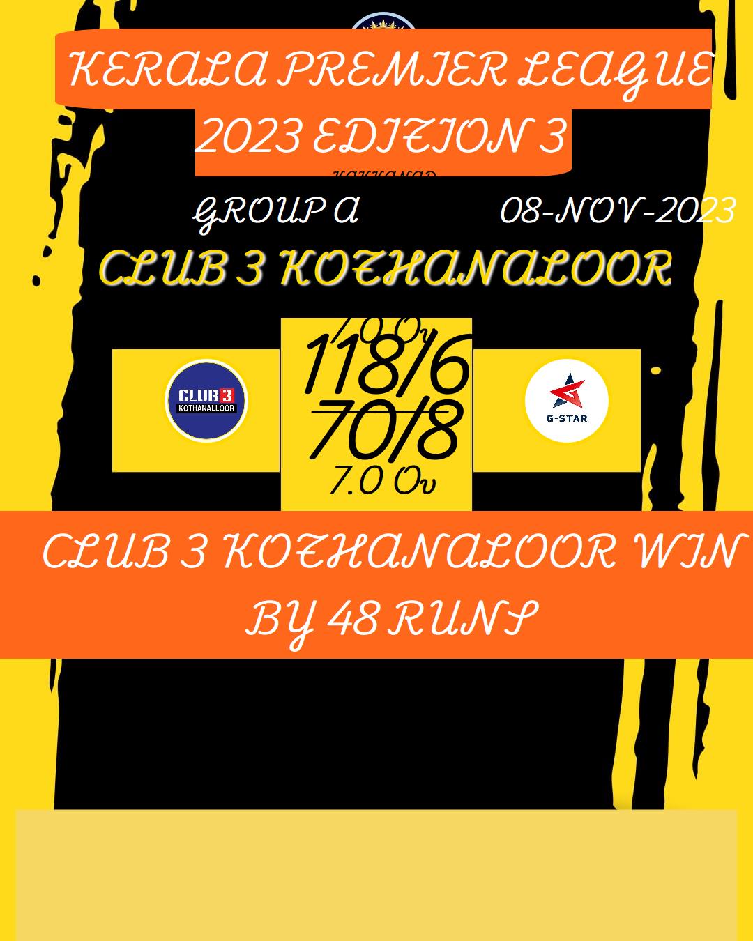CLUB 3 KOTHANALOOR (KERALA PREMIER LEAGUE 2023 EDITION 3) MATCHES