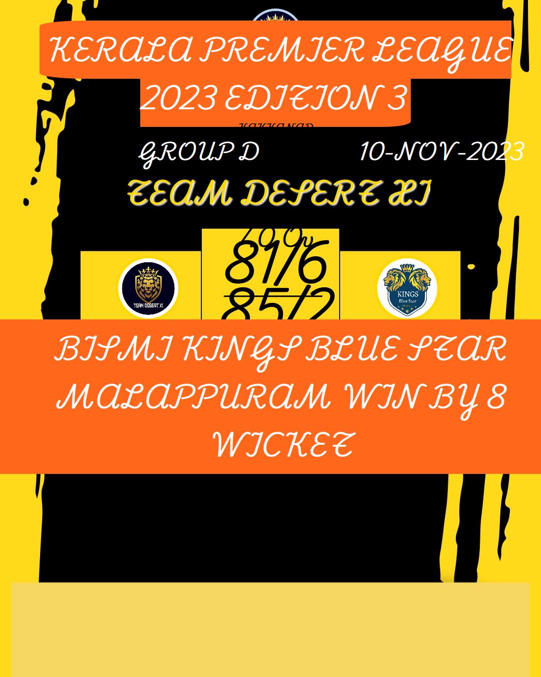 TEAM DESERT XI (KERALA PREMIER LEAGUE 2023 EDITION 3) MATCHES
